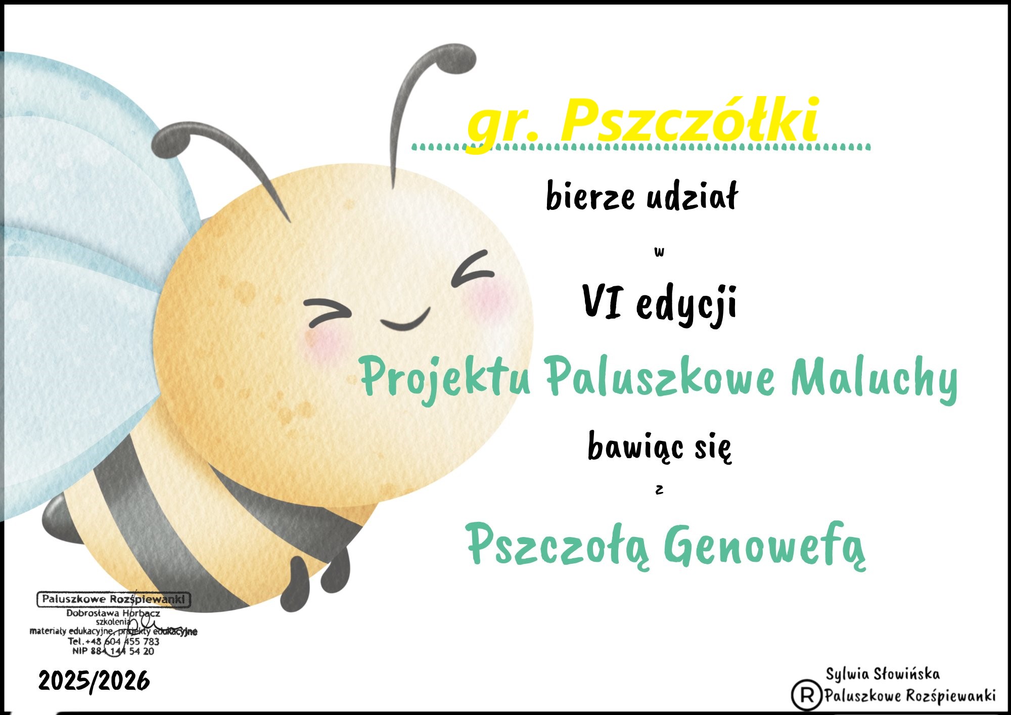 Projekt ma na celu rozwijanie aktywności małego dziecka w zakresie rozwoju mowy i motoryki małej, poprzez wykorzystywanie najprostszych form zabawy. Projekt realizowany jest w grupie "Pszczółki"
